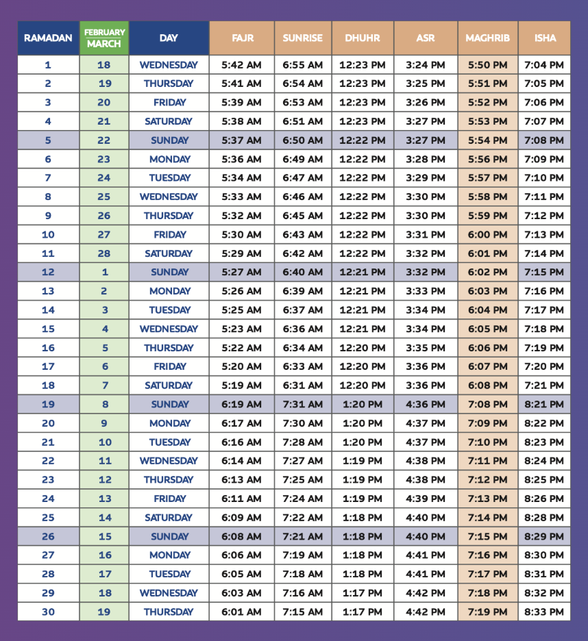 Qiyam Prayers will be held by Imam Ahmed on Fridays, Saturdays, and the last 10 Nights Insha’Allah